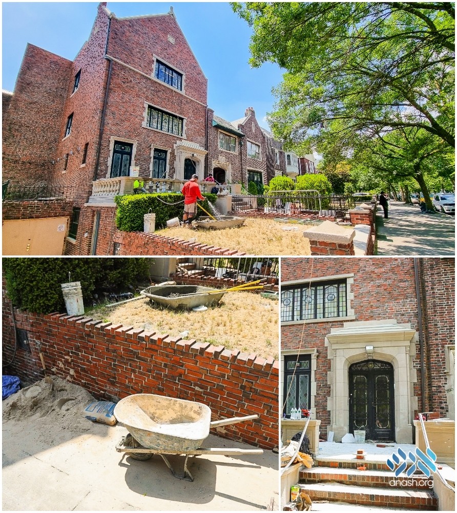 In an ongoing effort to expand and update the Rebbe’s Library, work has begun on retiling the porch and landscaping the front of the building.