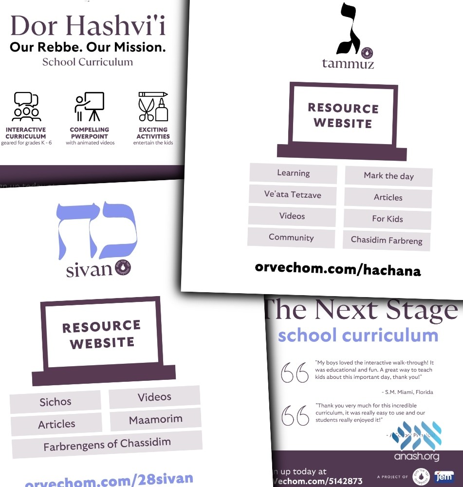 As the days of Chof Ches Sivan and Gimmel Tammuz swiftly approach, Or Vechom Hahiskashrus is pleased to once again offer exciting and interactive school curriculums to assist teachers and principals to educate their students on the significance of these important days.