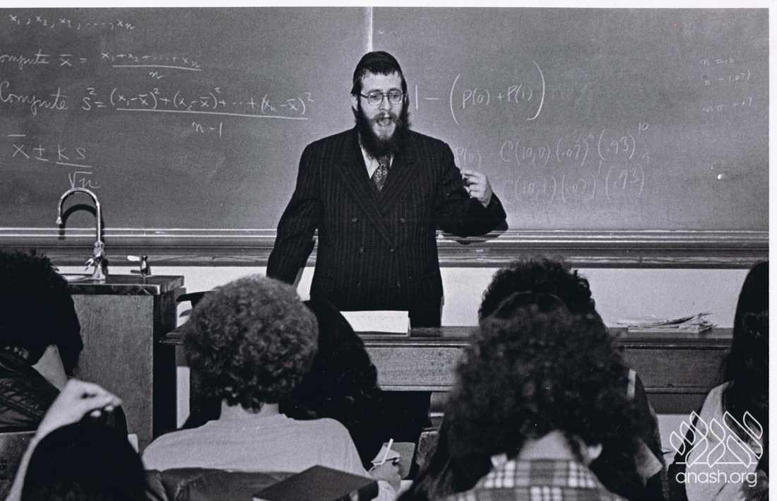 Right away, I put together a resume — I had been ordained to serve as a rabbi and a rabbinic judge, and had published several articles in Torah journals, all of which I said were equivalent to a college degree — and submitted an application to teach at the university. Miraculously, they approved. Without exaggeration, that semester alone I taught four credited courses, with midterm papers and finals: Chasidic Philosophy, Jewish Mysticism, Jewish Law, and Chasidic Music as Literature, where I would play chasidic melodies from the “Nichoach” series of records and then explain what the melody was about. There could be between forty and a hundred people in a course, and over the years, well over ten thousand students took them.