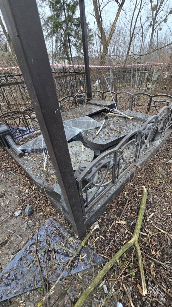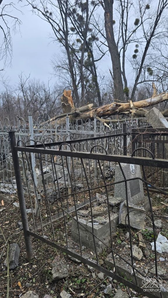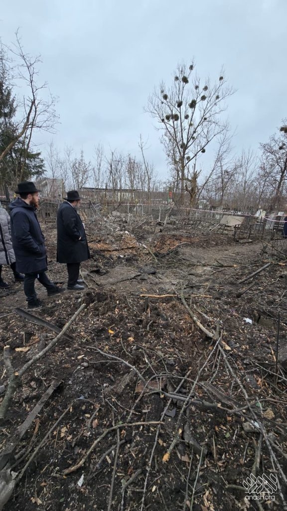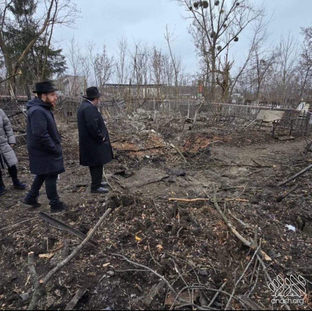 Over Shabbos, a Russian rocket attack caused extensive damage to the Jewish cemetery in Kharkov. The city’s chief rabbi and shliach, Rabbi Moshe Moskovitz, went to inspect the destruction and recited Tehillim l’ilui nishmas the Yidden who were buried there.