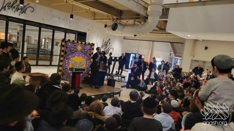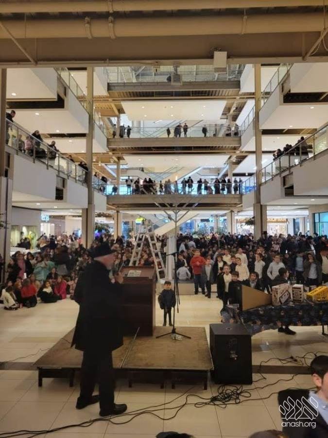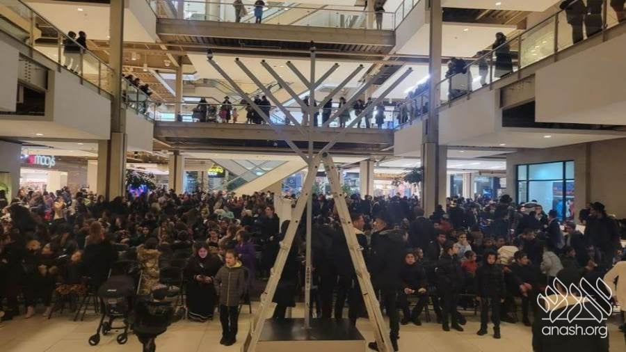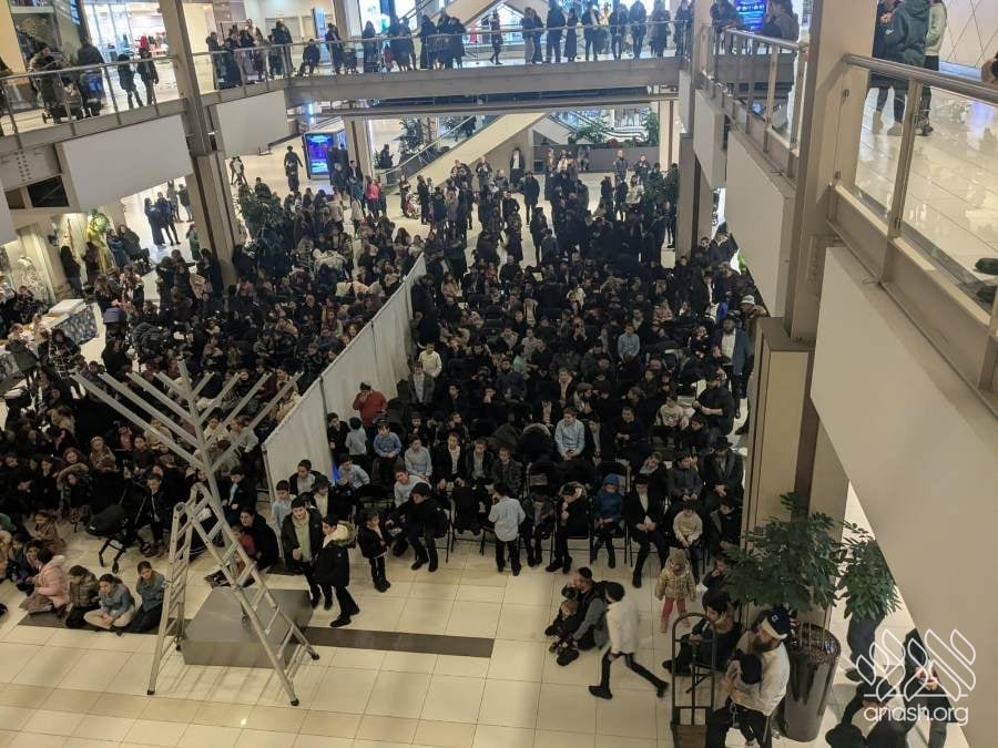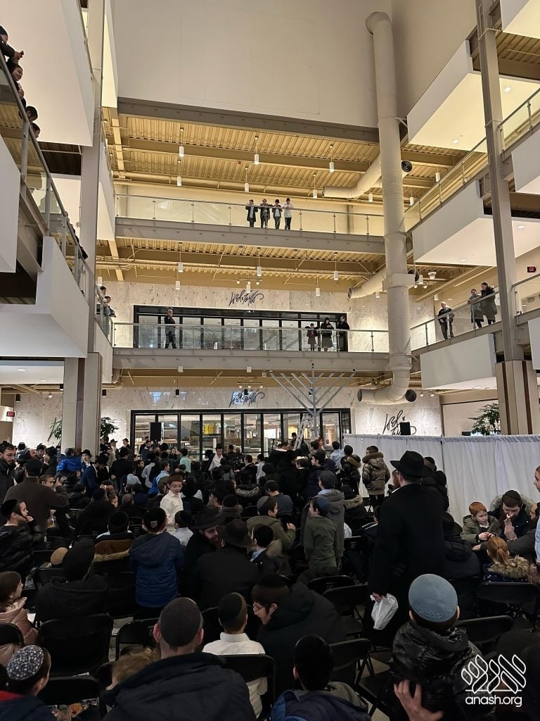 The parade drove through local streets and busy highways, spreading the light and joy of Chanukah to thousands of passersby and cars, with a major pirsumei nisa. The parade concluded at the large Palisades Center Mall by Macy’s, where over a thousand people had already gathered for a grand menorah lighting.