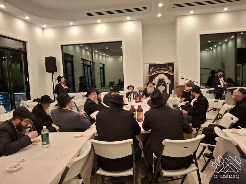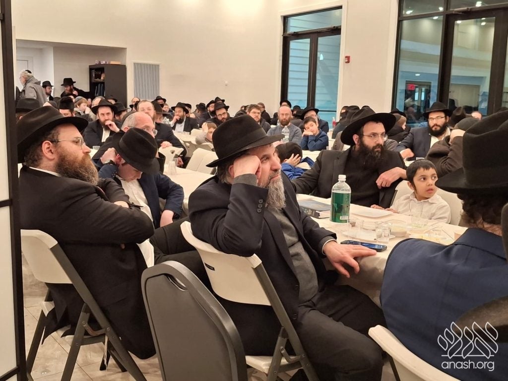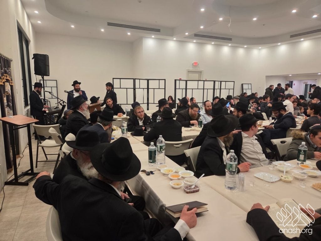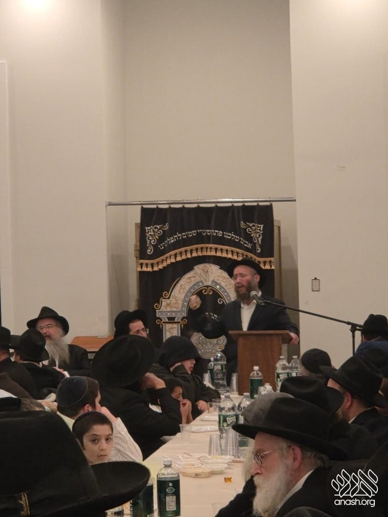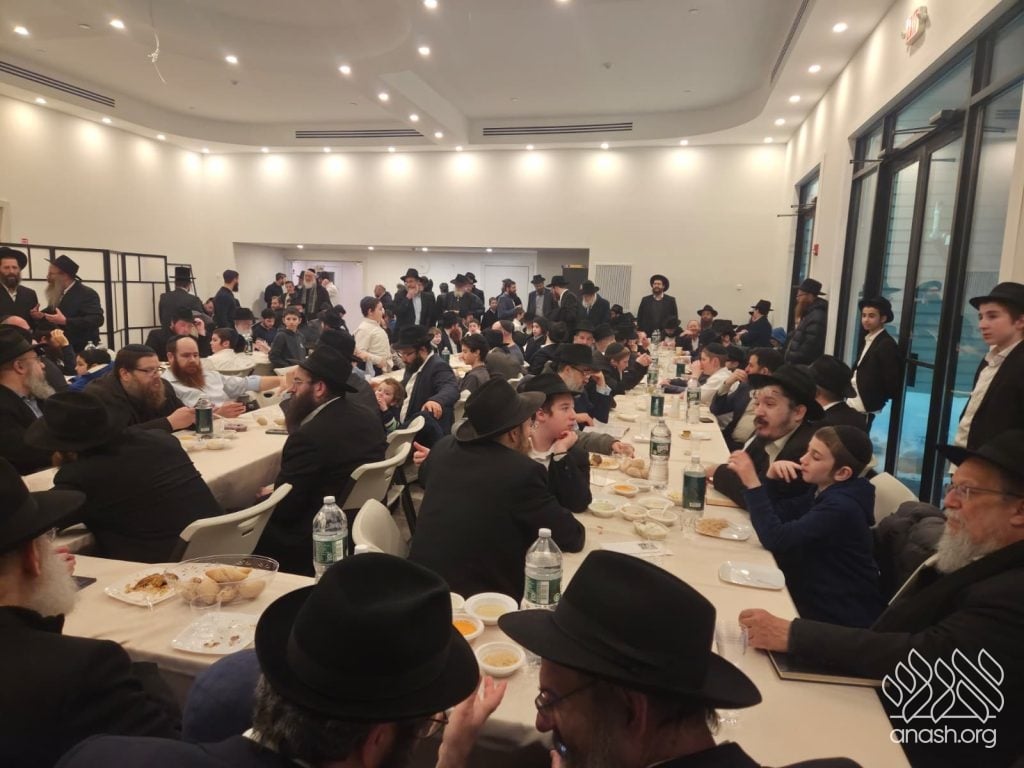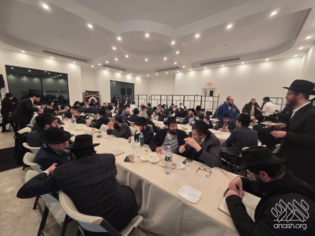 Popular speaker Rabbi Shais Taub engaged the crowd with his stirring words from the heart about this momentous occasion and the great importance of the Rebbe’s daily learning of the Rambam initiative. Powerful niggunim, sang by the soulful master vocalist chazan Berel Zucker, stirred the hearts of those present by this special, uniting, festive seudas mitzva of the siyum and renewed beginning of this continuing worldwide Rambam learning.
