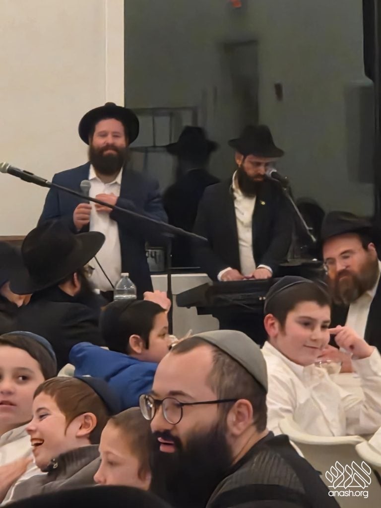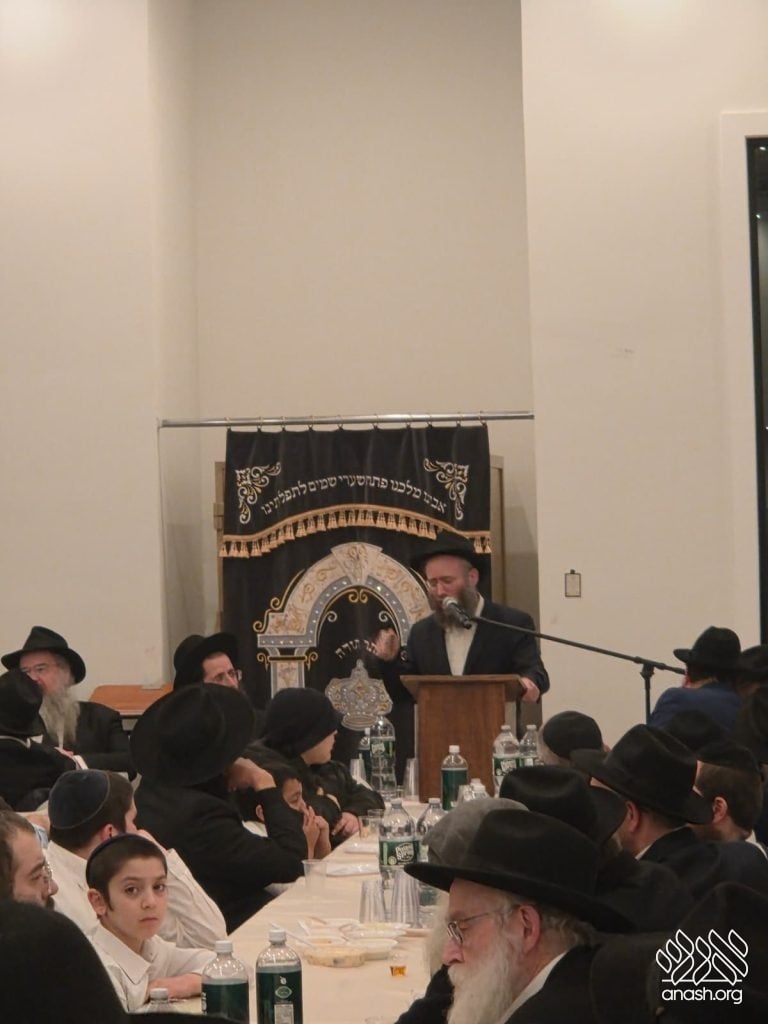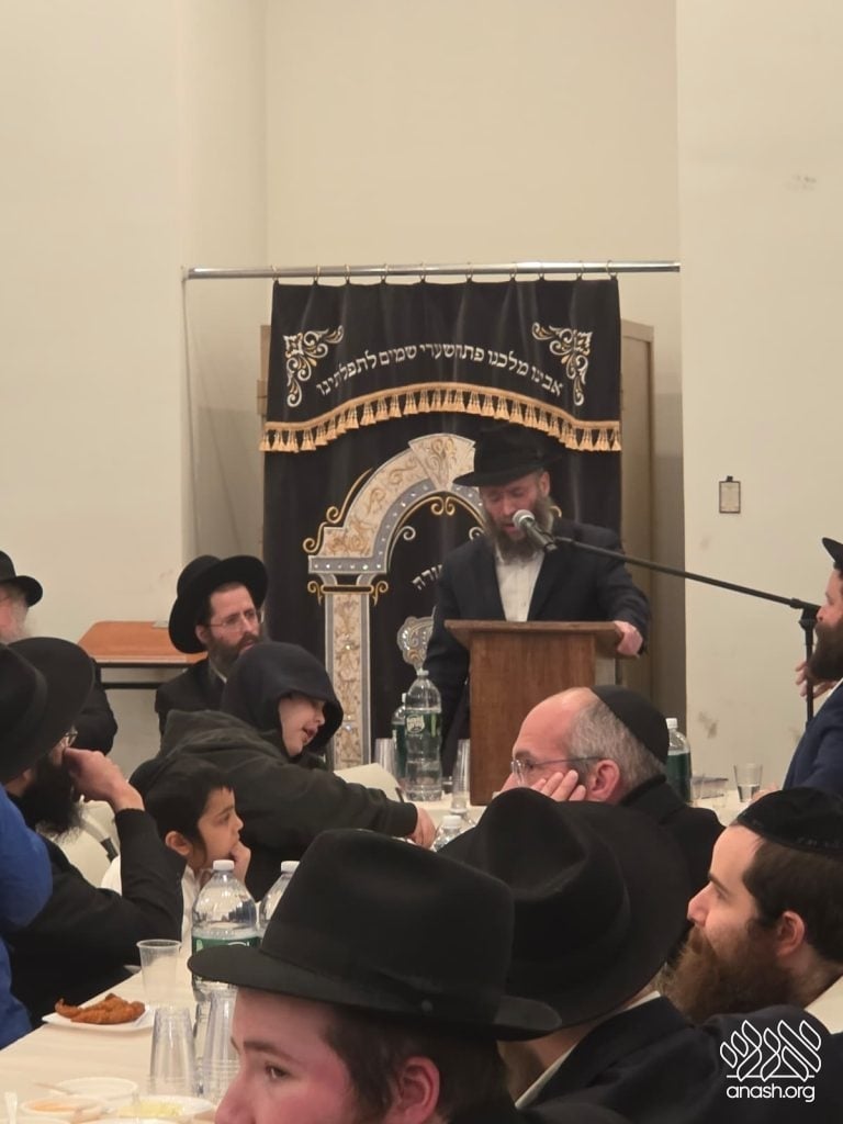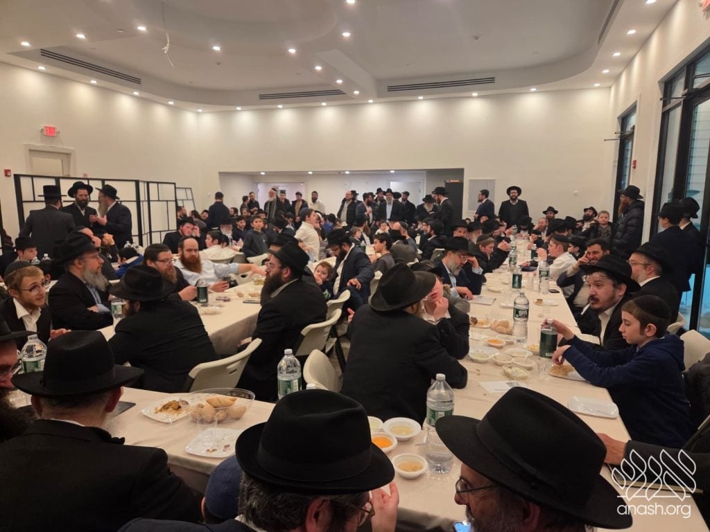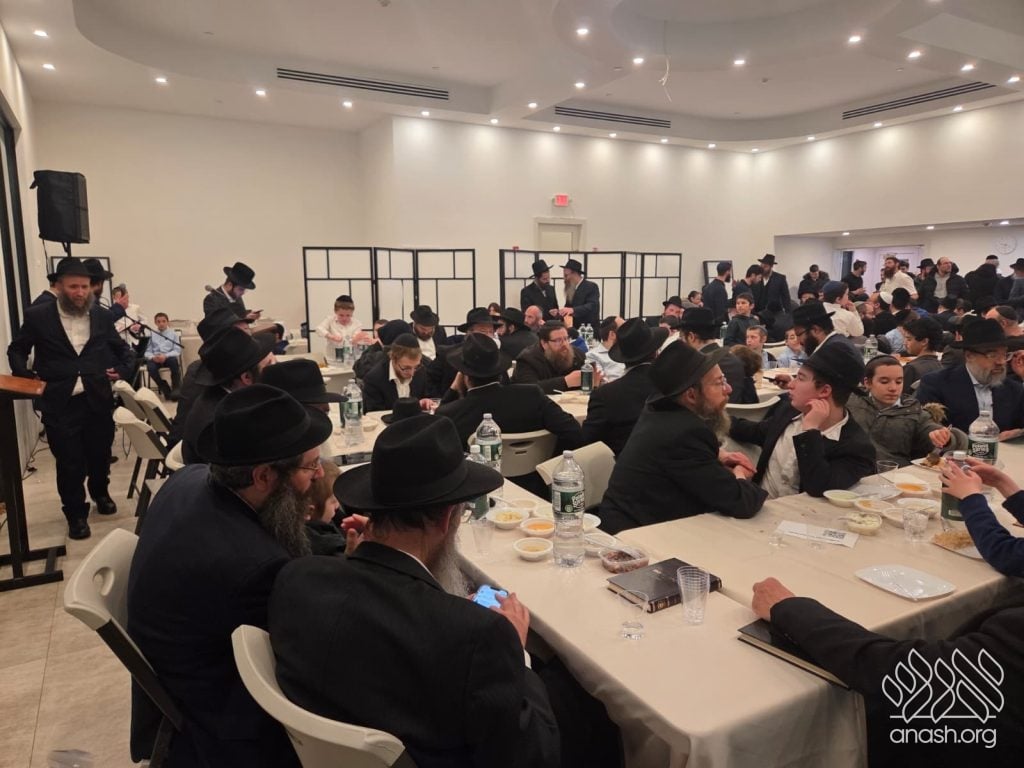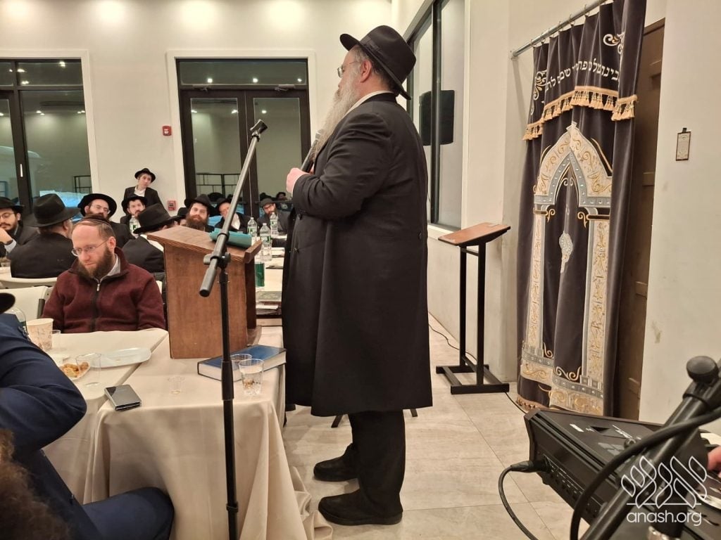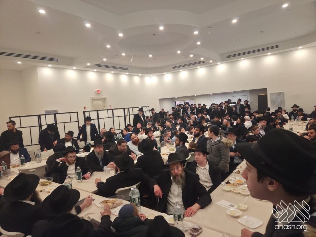 Popular speaker Rabbi Shais Taub engaged the crowd with his stirring words from the heart about this momentous occasion and the great importance of the Rebbe’s daily learning of the Rambam initiative. Powerful niggunim, sang by the soulful master vocalist chazan Berel Zucker, stirred the hearts of those present by this special, uniting, festive seudas mitzva of the siyum and renewed beginning of this continuing worldwide Rambam learning.