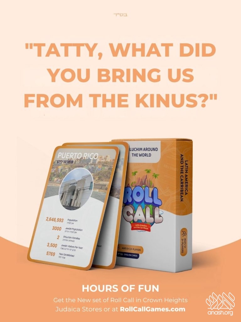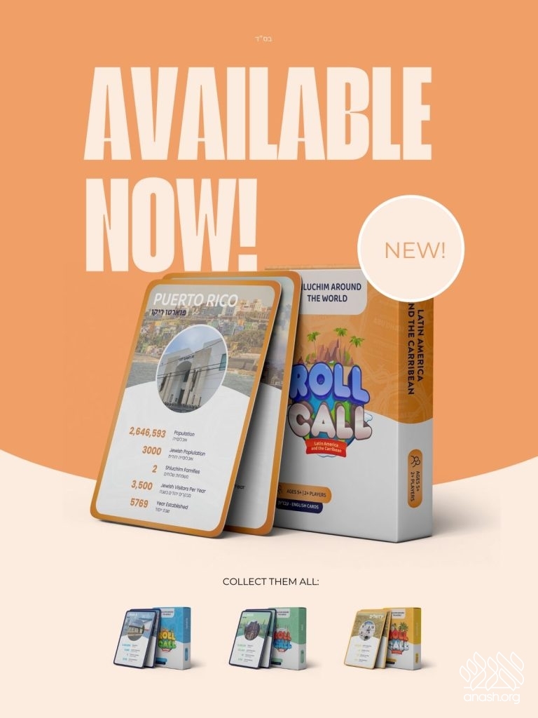 Ever wonder how many Shluchim there are around the globe? Ask any kid and they might be able to tell you all about USA, Europe, Eretz Yisroel, and now about Latin America too. That’s because “Roll Call” is back with another beautiful deck of cards teaching kids all about the Rebbe’s Shluchim in Latin America and the Caribbean.