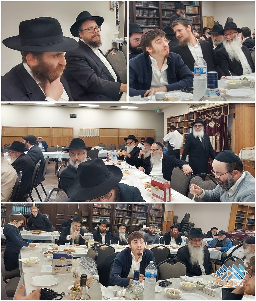 The Shabbos afternoon farbrengen was led by Rabbi Yisroel Noach Raichik, rov of Congregation Levi Yitzchok. Rabbi Dovid Shmuckler and Rabbi Mendel Greenbaum spoke as well.
