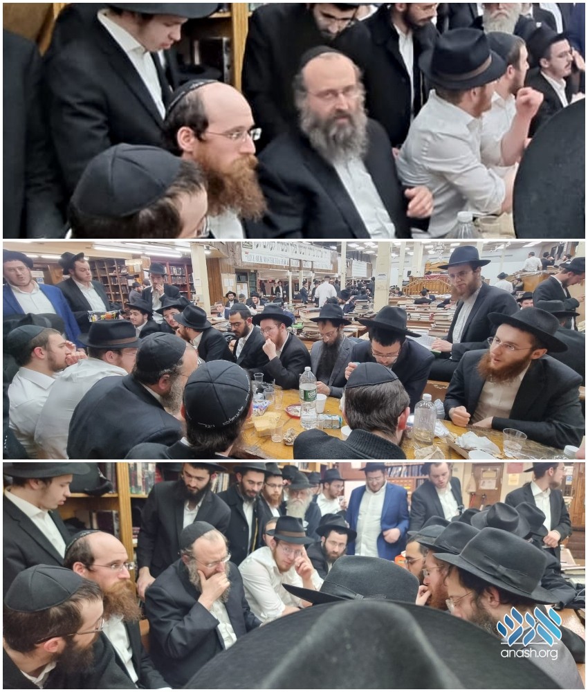 Joining the farbrengen were friends and students of Rabbi Braun, as well as Temimim and community activists,