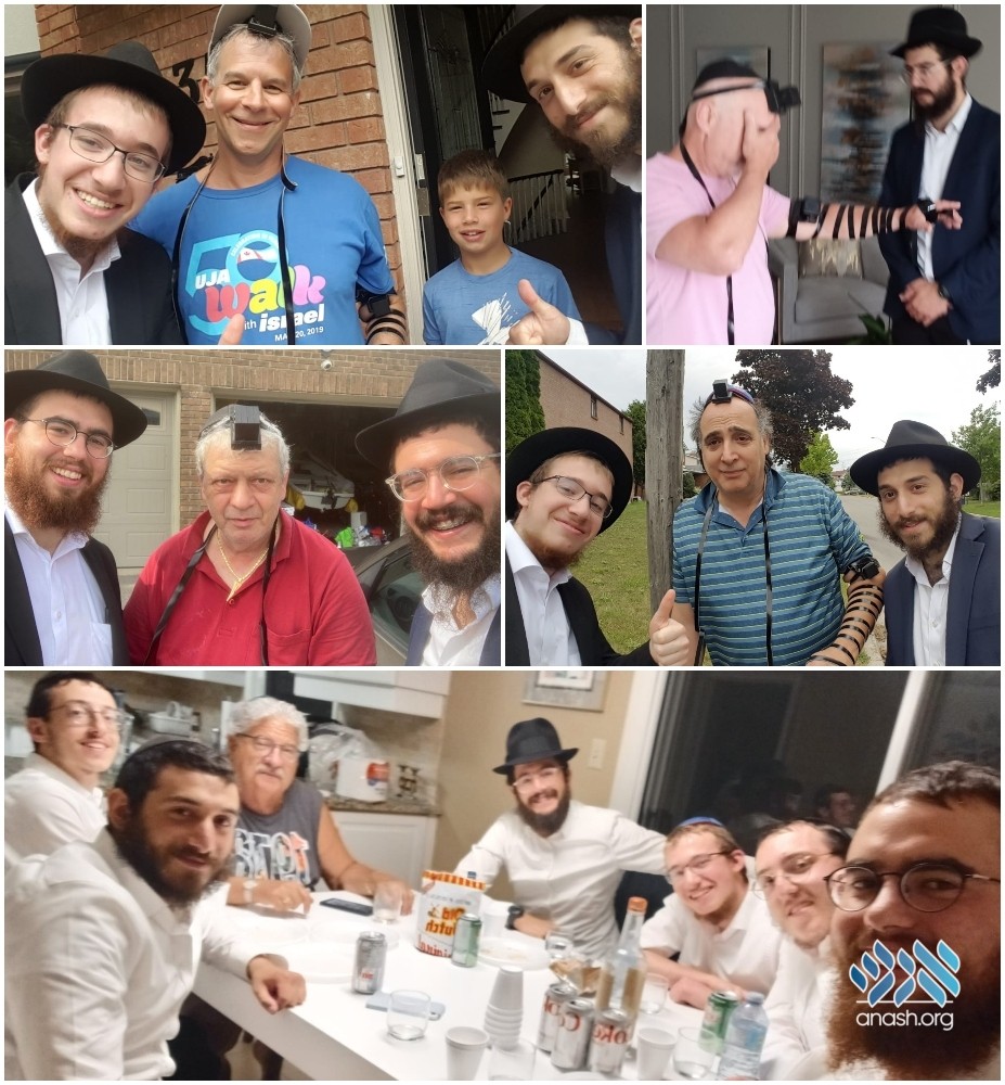 The results were staggering. As a result of their non-stop efforts literally hundreds of new Jewish people were discovered living only a stone’s throw away from the Jewish community and Community center in Markham. Through the course of the week, hundreds of men were given a chance to put on Tefillin, women were encouraged to light Shabbos candles. Mezuzot were checked and beautiful brochures about our activities were distributed throughout the neighborhood.