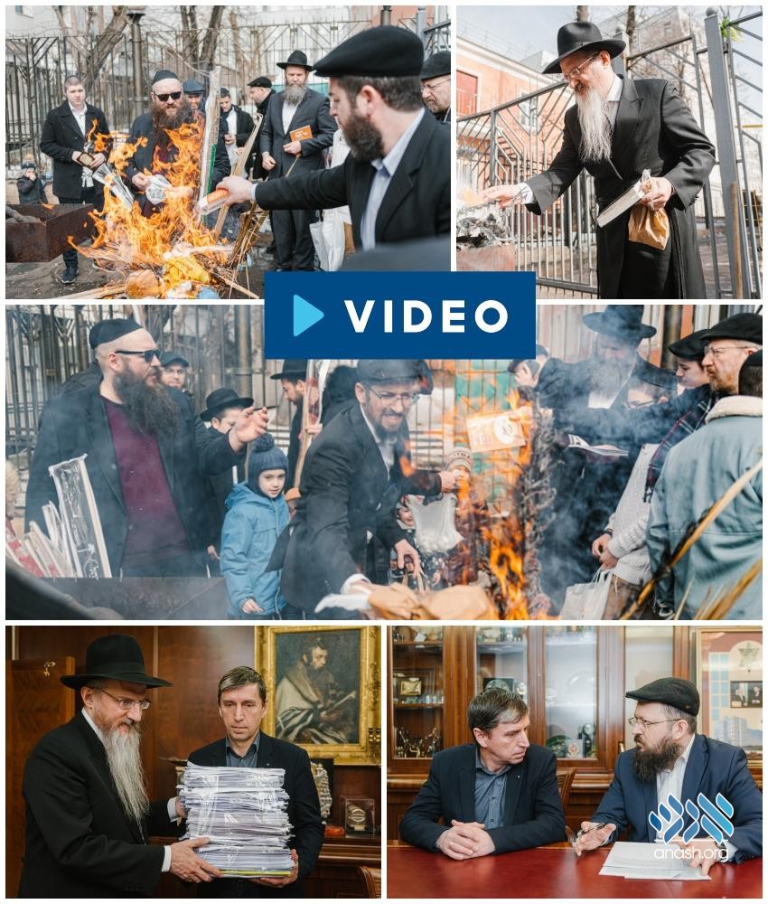 Chief Rabbi of Russia Rabbi Berel Lazar sold the chametz of the Russian Jewish community to a non-Jew. Subsequently, all remaining chametz was burned in the courtyard of the Marina Roshcha Synagogue in central Moscow.