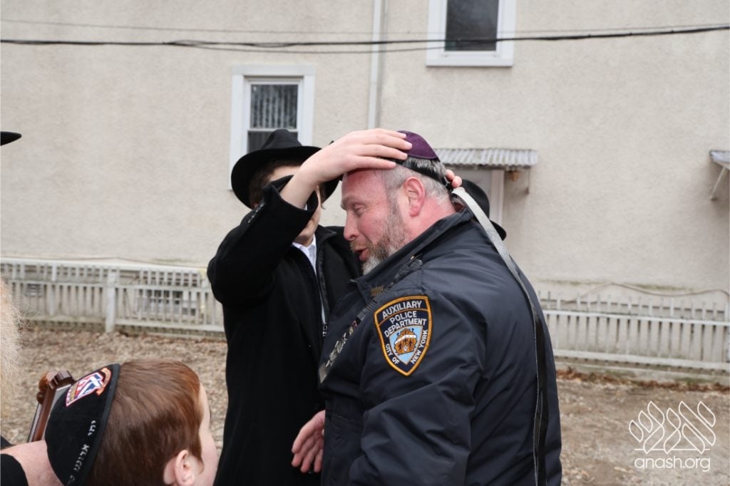 The evening continued with lively dancing led by Mendy Kraus, a kids’ zone with inflatables, cotton candy, and popcorn, and a police presence that allowed several officers to put on tefillin with yeshiva bochurim.