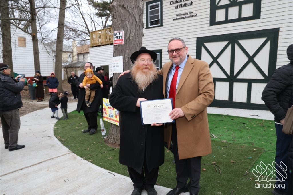 Friends, community members, fellow shluchim, and neighbors gathered on the sprawling property as Rabbi Zalman Liberow, the Rebbe’s first Shliach to Flatbush, opened the evening with heartfelt remarks. He reflected on the miracles unfolding in Eretz Yisrael and compared the ribbon-cutting to Ufaratzta — breaking the boundaries and spreading forth Torah and Chassidus in preparation for the arrival of Moshiach.