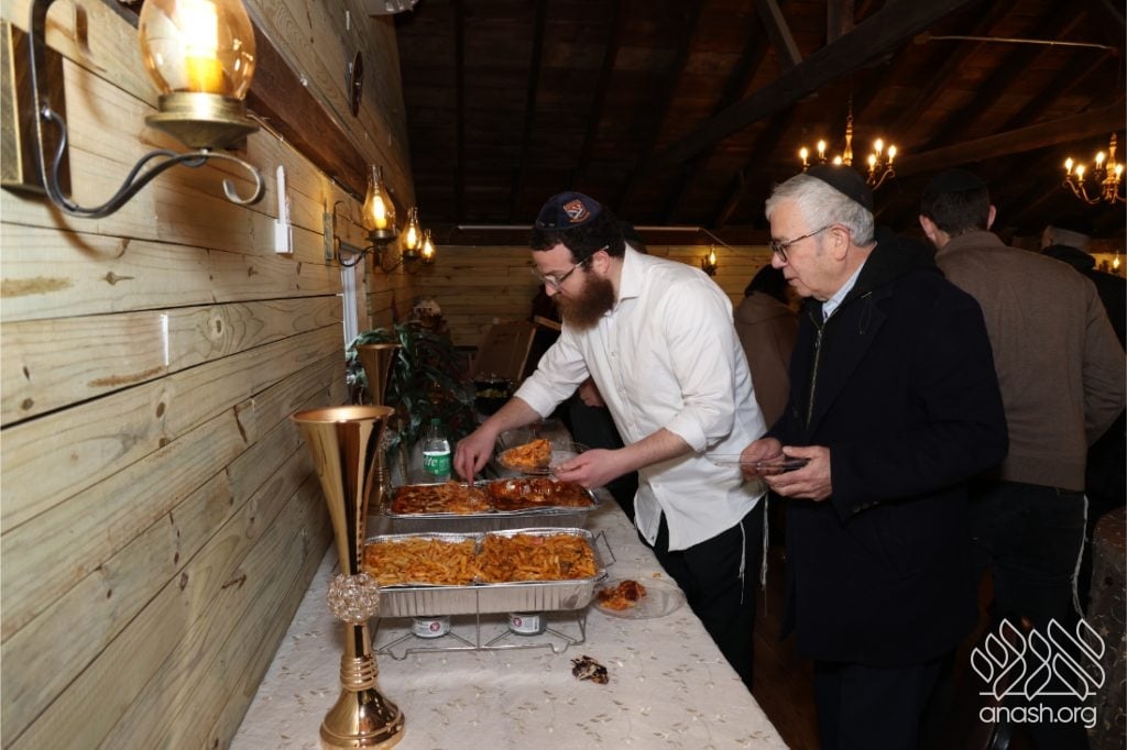Guests also enjoyed a lavish dairy meal upstairs in the beautiful event space. The meal was generously sponsored by Mrs. Rivka Freeman in memory of her mother.