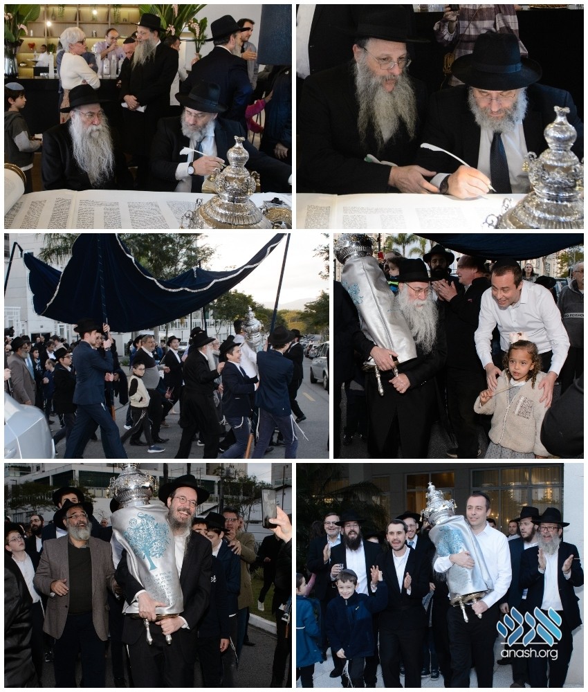 A new Sefer Torah was joyously welcomed this week to the Barra Funda Beis Chabad in S. Paulo, Brazil generously donated by the Kalinowski family.