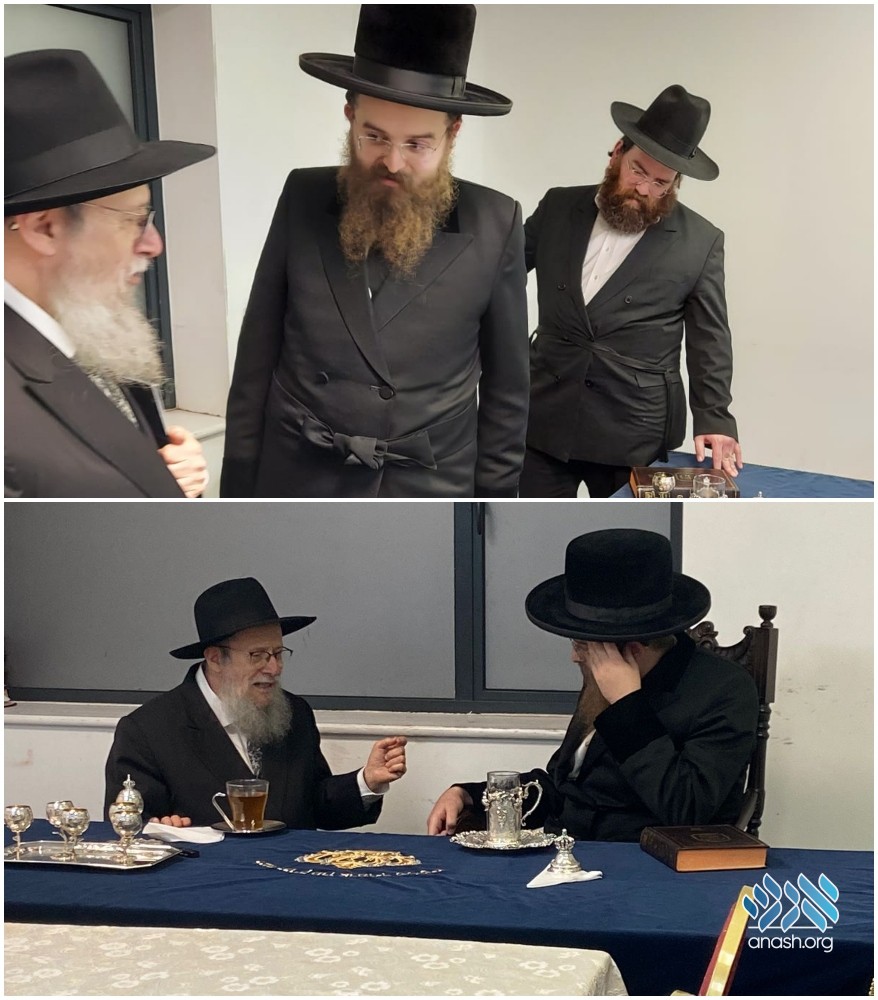 On Thursday, the Sadigura Rebbe of London welcomed Rabbi Gurary into his house for what was meant to be a short discussion. Both Rabbi Gurary, as a grandson of the Kapishnitzer Rebbe, and the Sadigura Rebbe, are descendants of Reb Yisroel Ruzhiner, and are thus distant cousins.