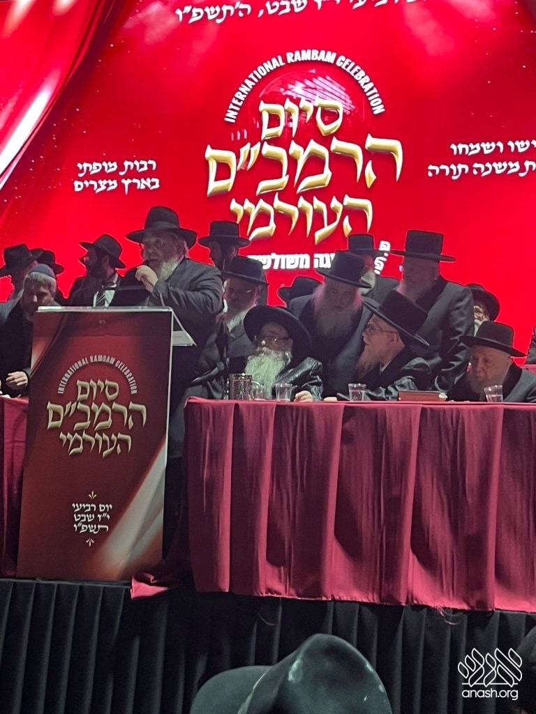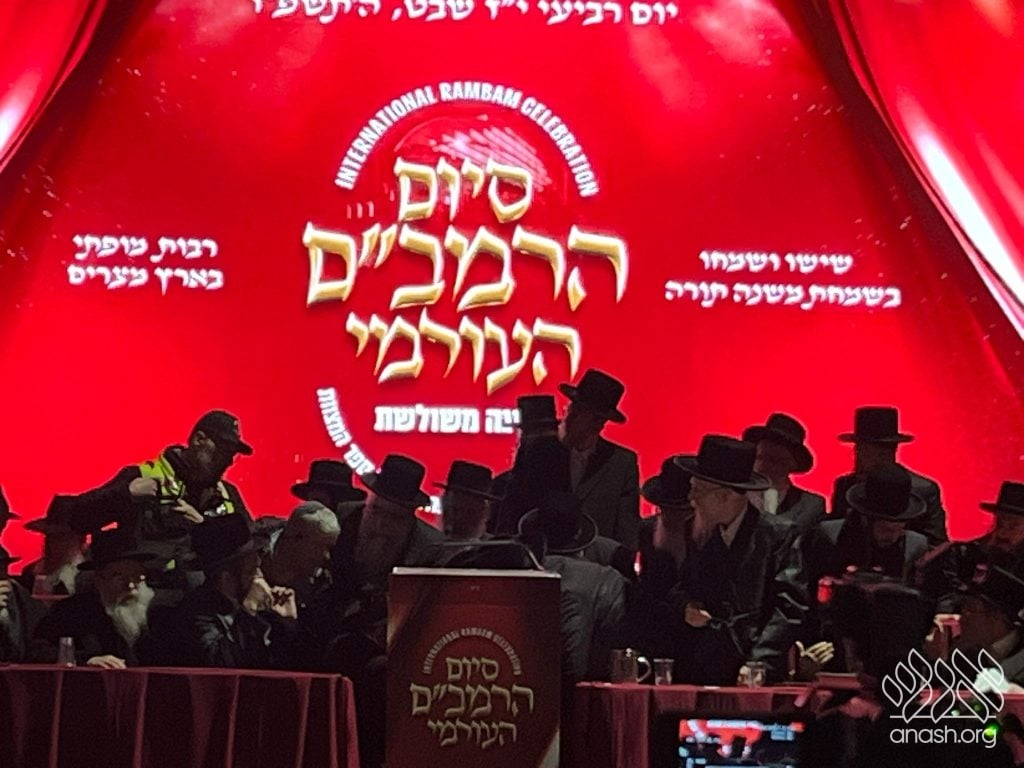 A moment of alarm unfolded at the grand Siyum HaRambam, when the Sanz-Klausenberg Rebbe of Borough Park, Harav Shmuel Dovid Halberstam, suddenly collapsed during his address. Boruch Hashem, he came to and completed his talk later in the event.