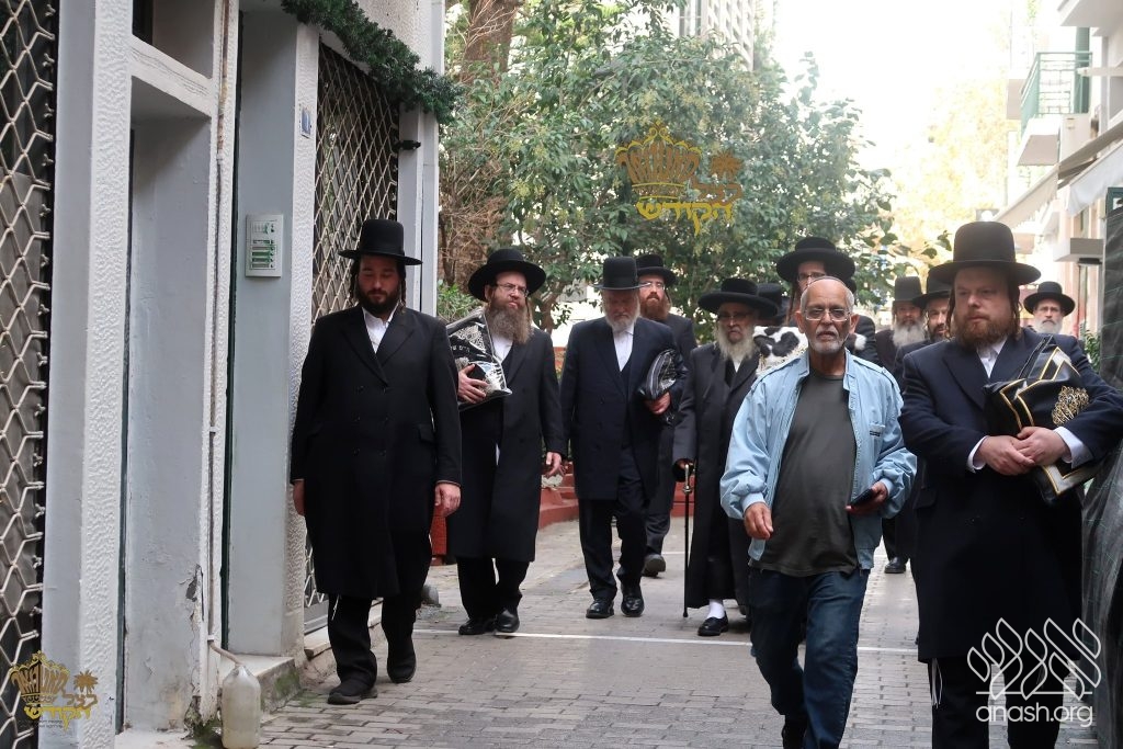 While traveling to Eretz Yisroel for the chanukas habayis of a girls’ school in Bnei Brak, the Satmar Rebbe of Kiryas Yoel, Rabbi Aharon Teitelbaum, made a full-day stop in Athens, Greece.