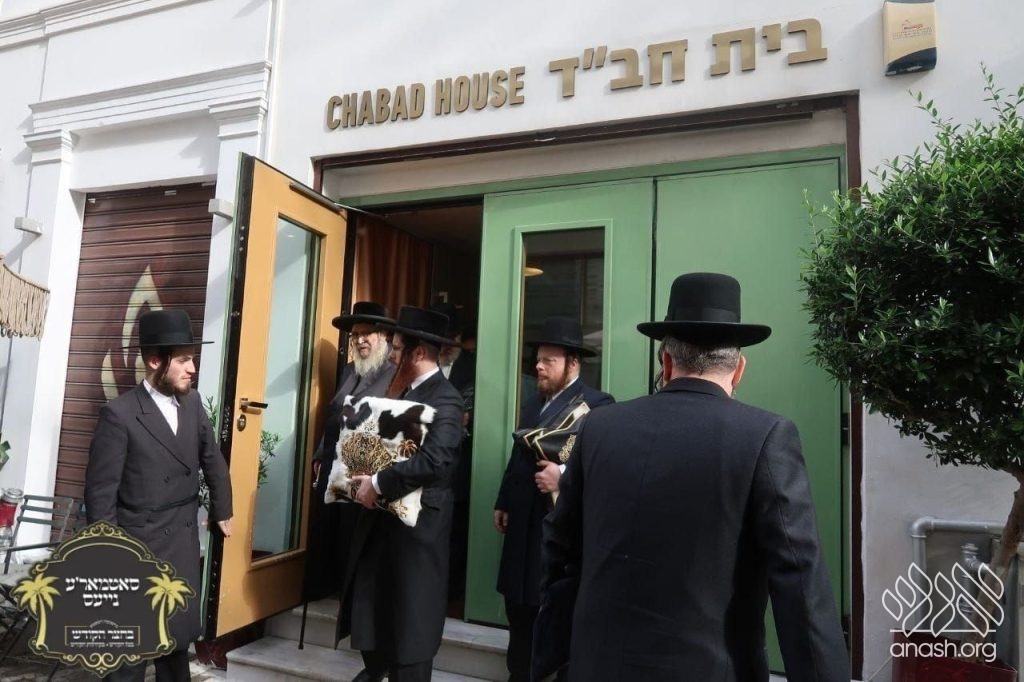 En route to Eretz Yisroel, the Satmar Rebbe of Kiryas Yoel, Rabbi Aharon Teitelbaum, made a full-day stop in Athens, Greece, where he spent hours davening and learning at the local Chabad led by shliach Rabbi Mendel Hendel.
