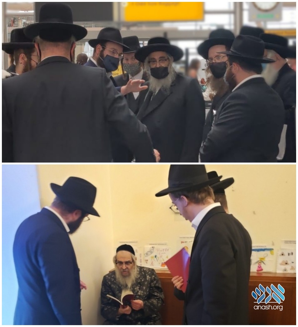 While passing through JFK airport on the way to Eretz Yisroel, the Satmar Rebbe Harav Aaron Teitelbaum praised the work of the Chabad bochurim at the airport, and was presented with a booklet of the Rebbe’s teachings.