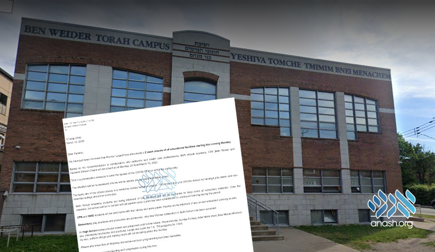 Following the school closure around the United States and Israel due to the spread of Coronavirus, Chabad Mosdos in Montreal have announced a two-week closure of all educational facilities beginning Monday.