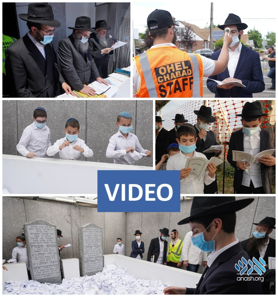 Men, women and children poured into the Rebbe’s Ohel on Thursday, Gimmel Tammuz, where they were given a brief period to read their pan and daven. During most of the day, the line was continuously moving, allowing visitors to walk through the Ohel while reading their pan.