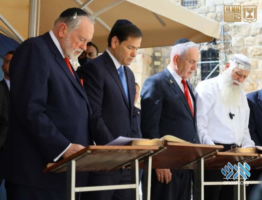 On his first official state visit to Eretz Yisroel, U.S. Secretary of State Marco Rubio, along with Prime Minister Binyamin Netanyahu and U.S. Ambassador to Israel Mike Huckabee, prayed at the Kosel before touring the newly opened Kosel Tunnel excavations, with significant discoveries from the Second Beis Hamikdash.