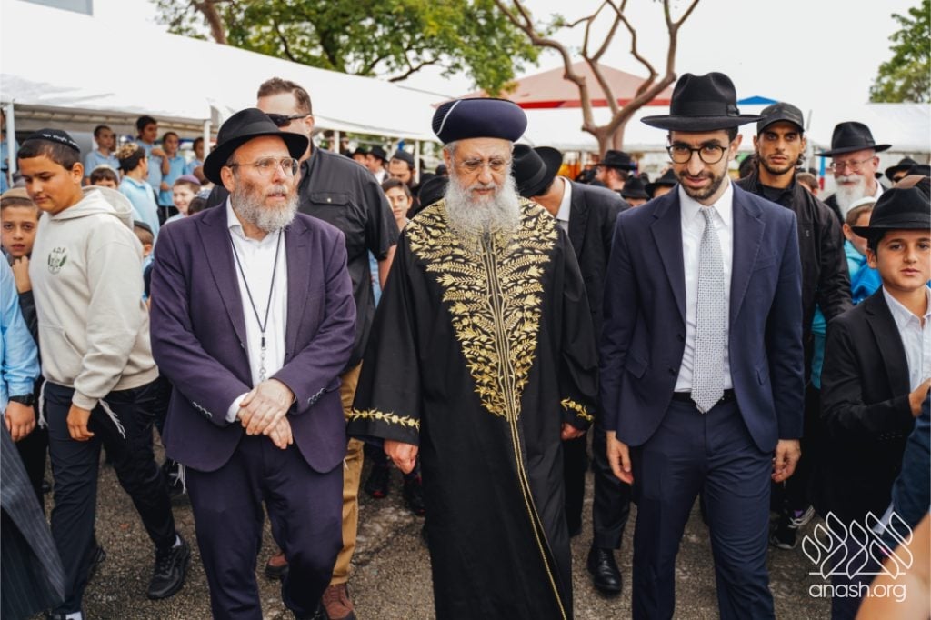 The staff and students of Miami’s Lubavitch Educational Center welcomed Rishon Letziyon Rabbi David Yosef, Israel’s Sefardic Chief Rabbi, who made a special visit to the boys schools.