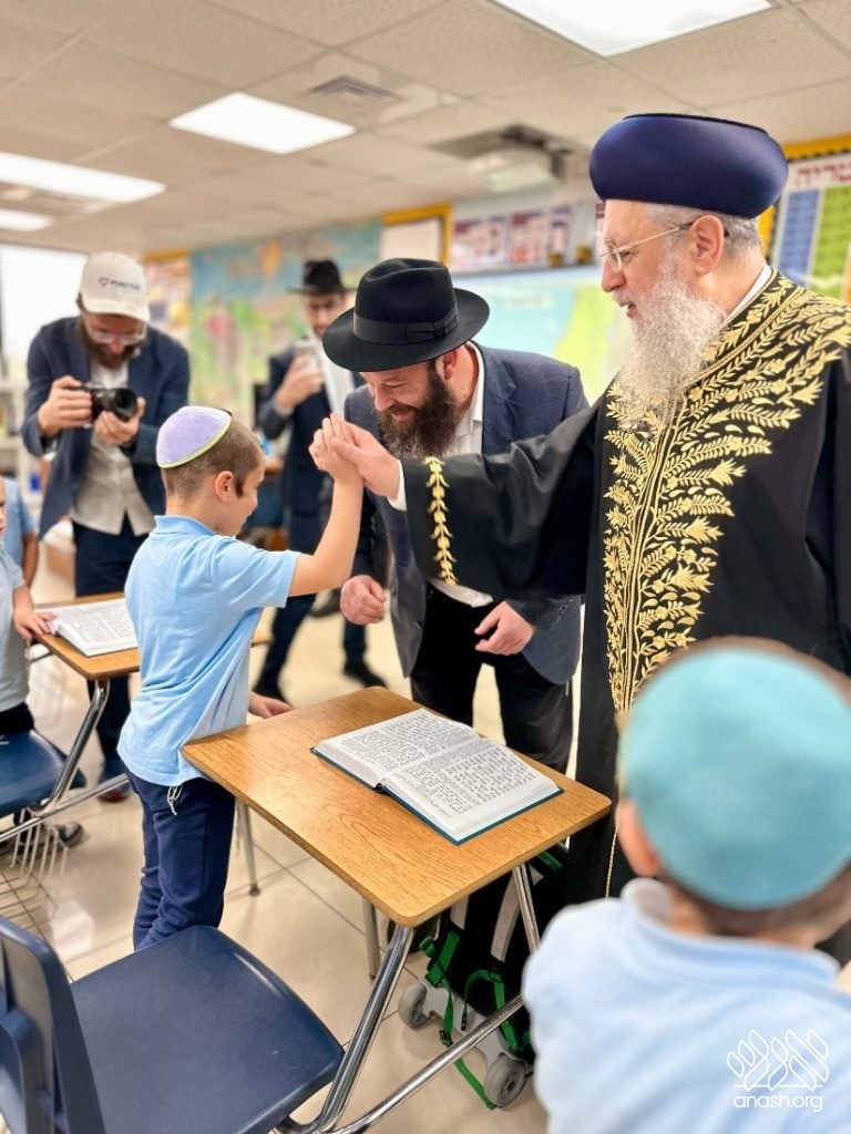 Staff and students of Miami’s Lubavitch Educational Center welcomed Rishon Letziyon Rabbi David Yosef, Israel’s Sefardic Chief Rabbi, who made a special visit to the boys’ schools.