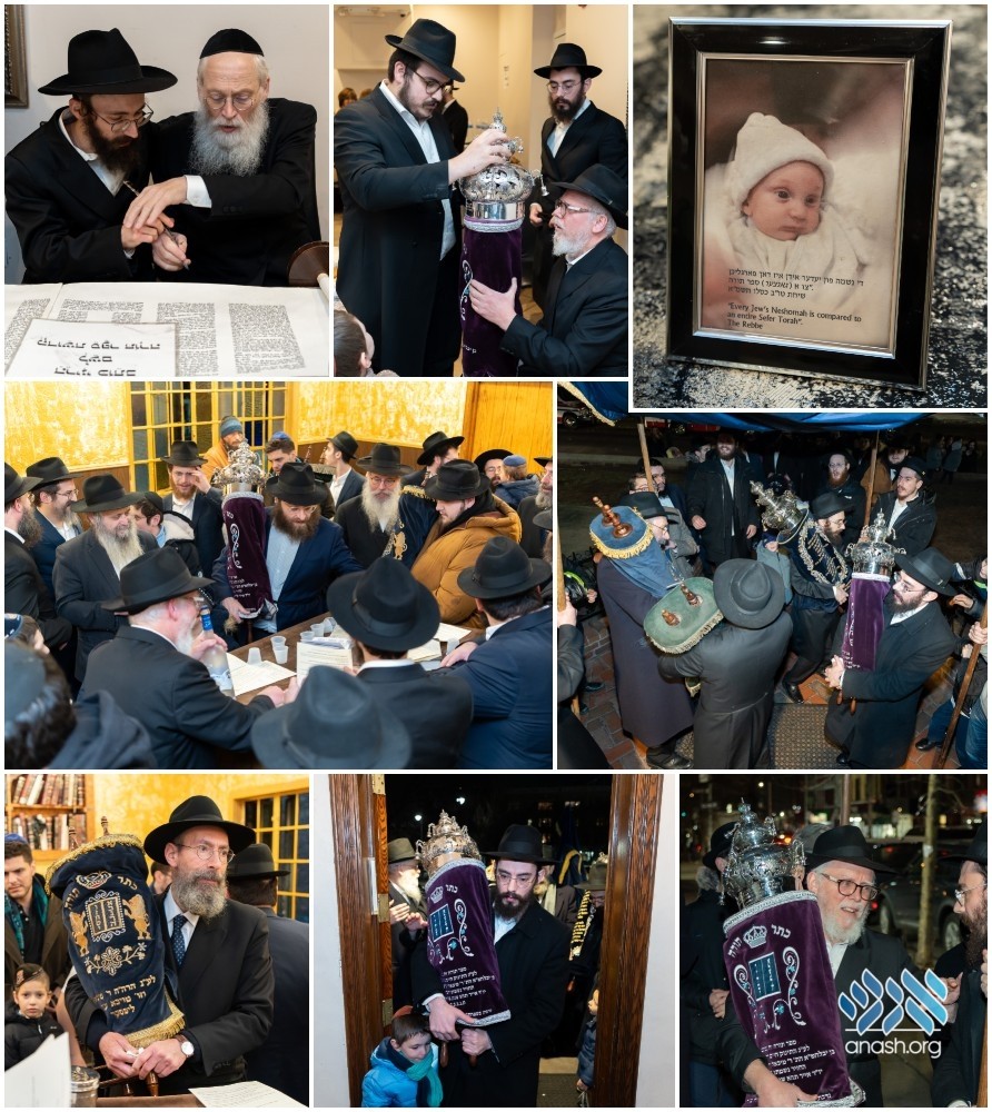 A new sefer Torah was dedicated Thursday in Crown Heights in memory of Chaim Refoel Fishman, the infant son of Rabbi Michoel and Chanie Fishman, who tragically passed away in Iyar 5781.