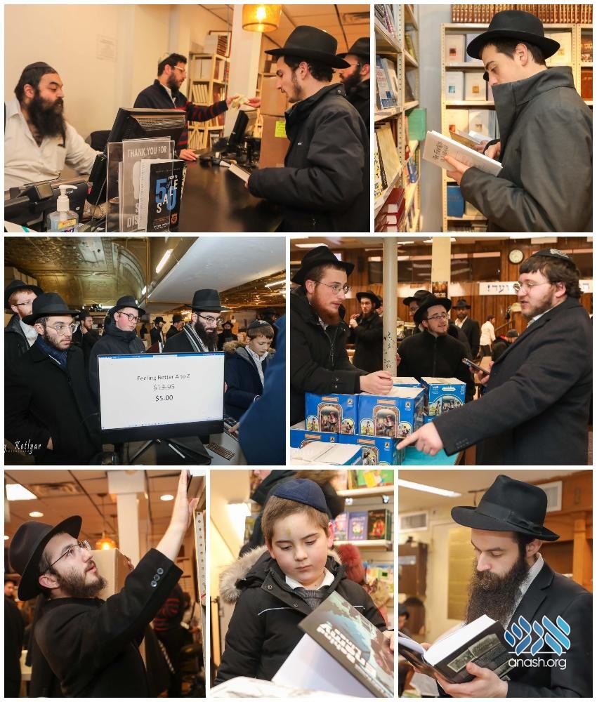 Seforim stores across Crown Heights were packed on Motzei Shabbos with hundreds of shoppers of all ages and stages taking advantage of the Hey Teves sales offered by each store.