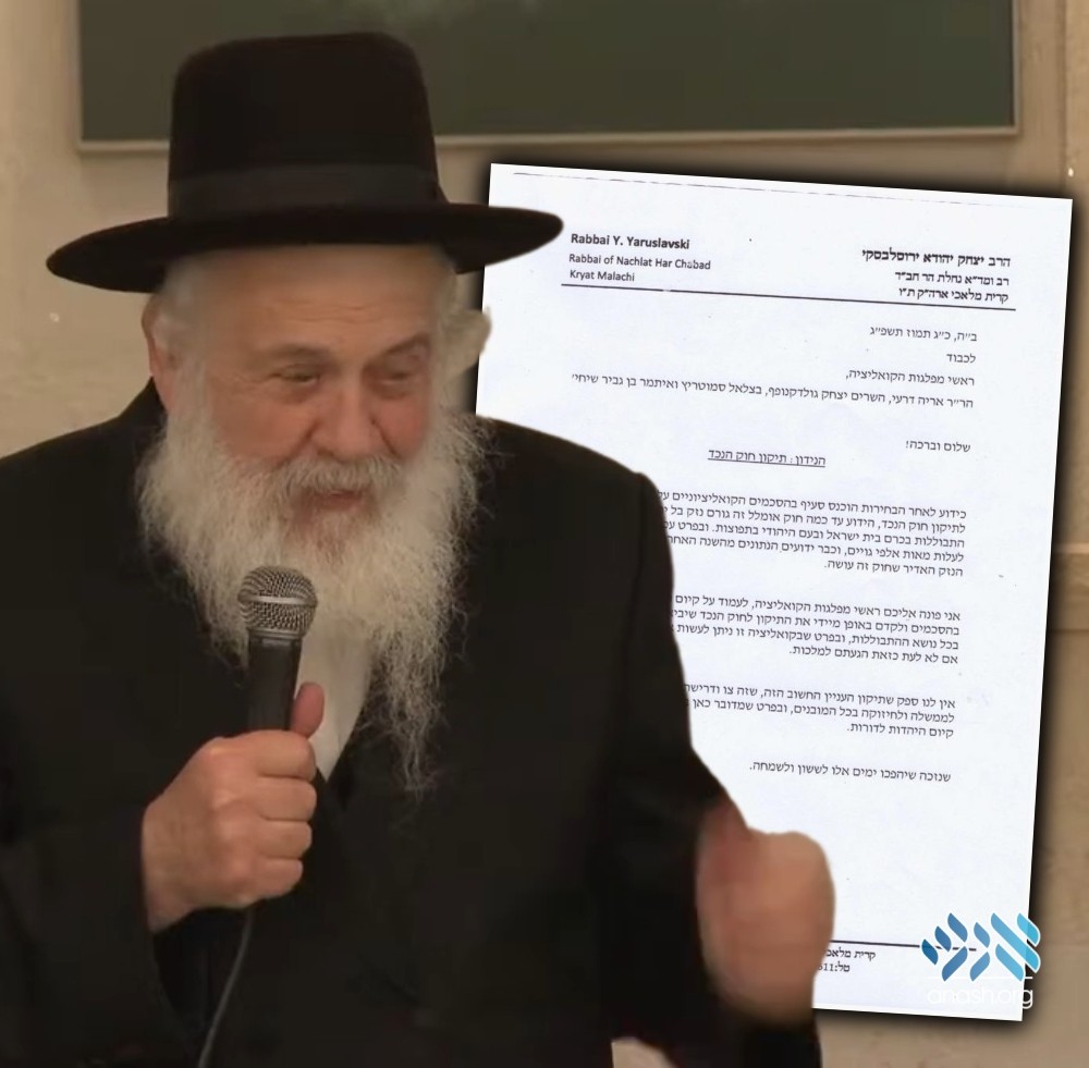 In a letter addressed to the heads of the frum political parties in the Israeli Knesset, Harav Yitzchak Yehuda Yaroslavsky, senior rov of the Beis Din Rabbonei Chabad in Eretz Yisroel, urged them to keep their promise to fix aspects of the ‘Who is a Jew’ law.