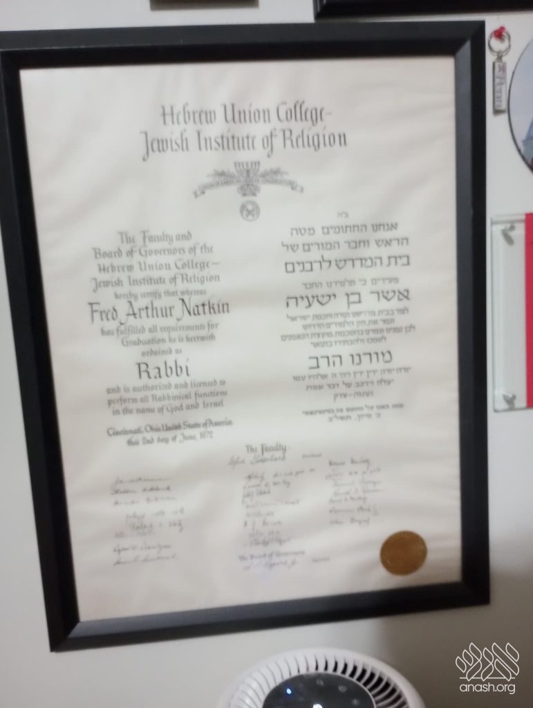 The “rabbinic certificate” is from the Reform college in Cincinnati, another story with the Alter Rebbe.