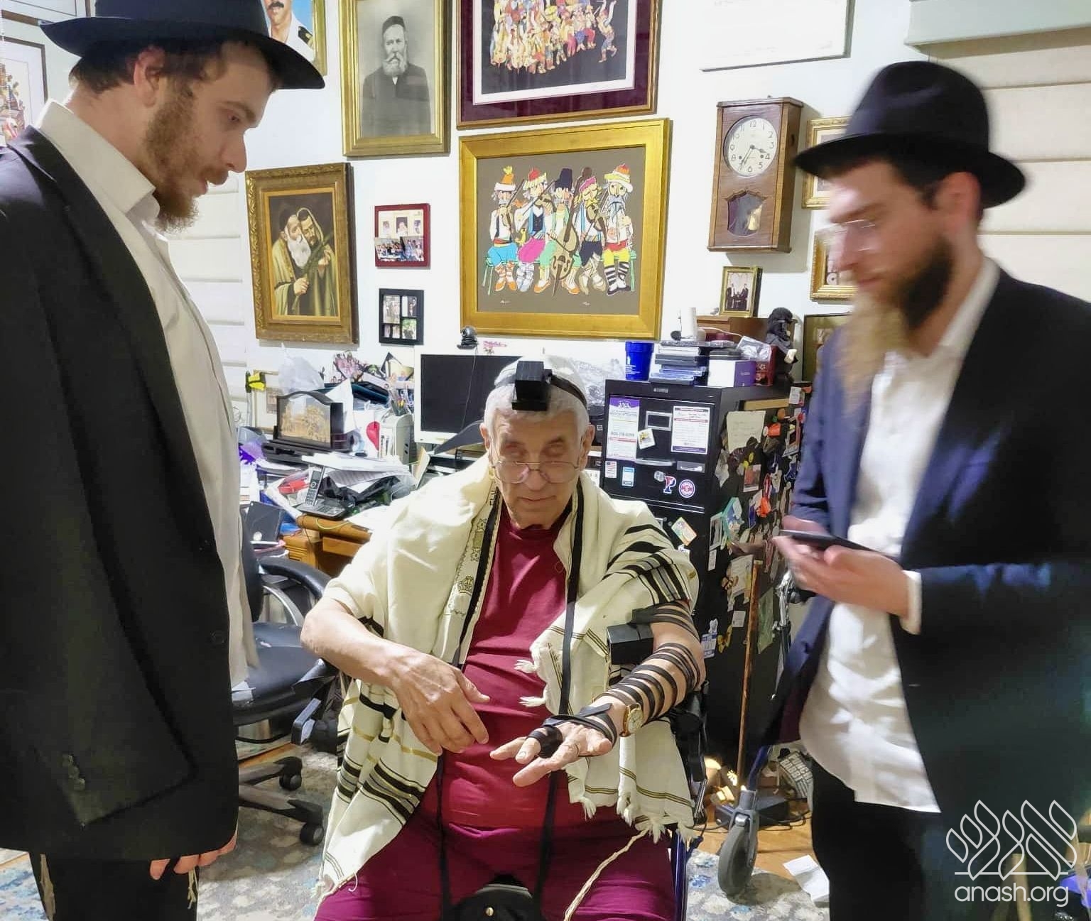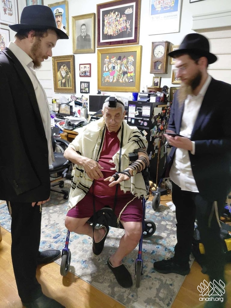 They knocked, and an elderly Jewish man warmly invited them in. When they asked if he wanted to put on tefillin, he explained that he had lost his own pair somewhere in the house but would be more than happy to put them on. They gladly helped him don tefillin, and together they began to say Shema.