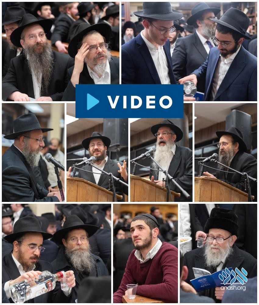 The farbrengen was addressed by Rabbi Yosef Braun of the Crown Heights Beis Din, Shluchim, Mashpiim, and Roshei Yeshiva from around the world. The emcee was Rabbi Gershon Avtzon, Rosh Yeshiva of Yeshivas Lubavitch Cincinnati.