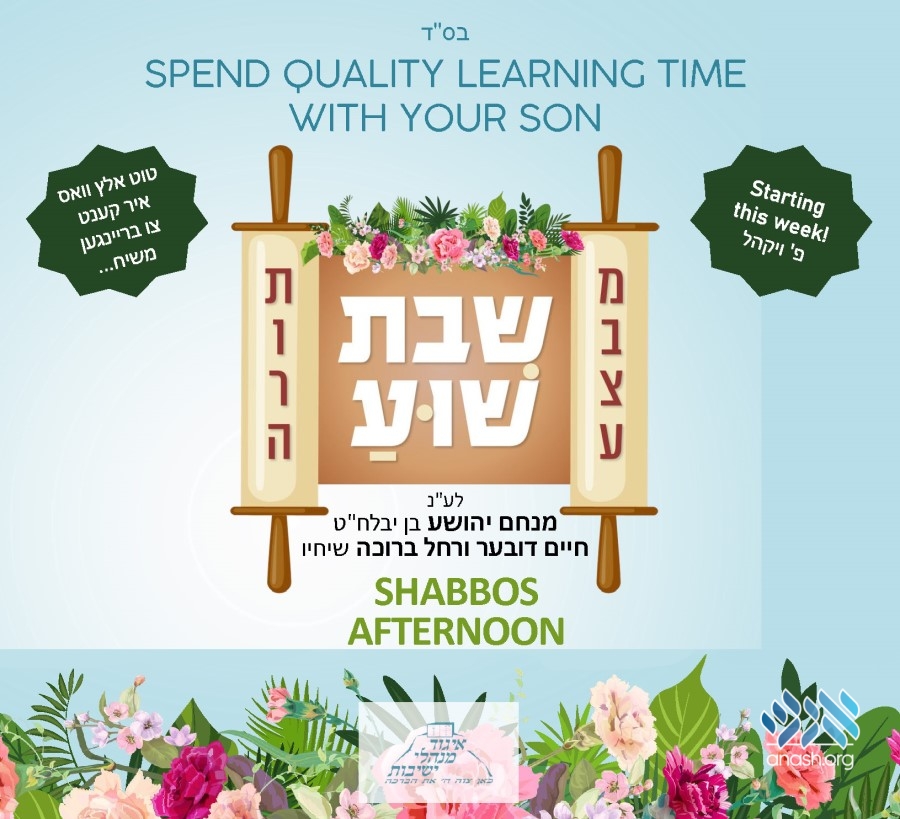 ‘Shabbos Shua’ is an innovative program in Crown Heights allowing fathers to connect with their sons and enjoy the sweetness of Torah together. Now with the long Shabbos afternoons, you can spend quality time in a beautiful kol Torah with prizes for the children.
