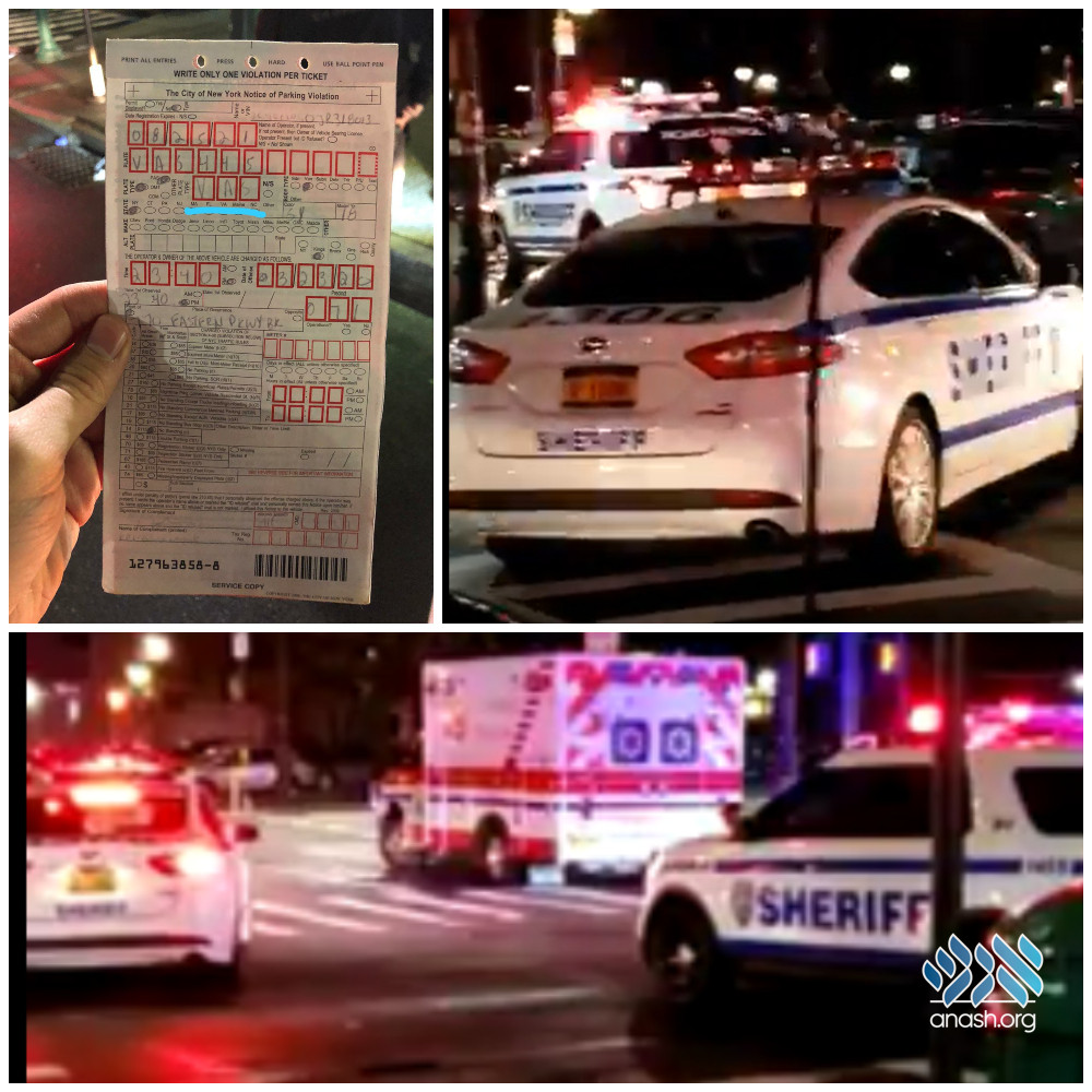 In the middle of one such call, an NYC Sheriff was seen giving a ticket to a Hatzalah volunteer, as he responded to the emergency on Eastern Parkway.