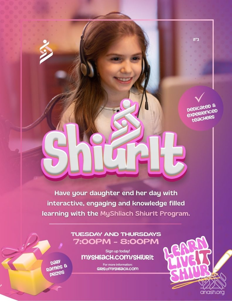 Tonight, as every night, hundreds of young Shluchim across three time zones, from Milwaukee to Rotterdam, will gather online for Yeshivas Erev. And now, for the first time, girls will have the same opportunity through a new program called Shiur-It.