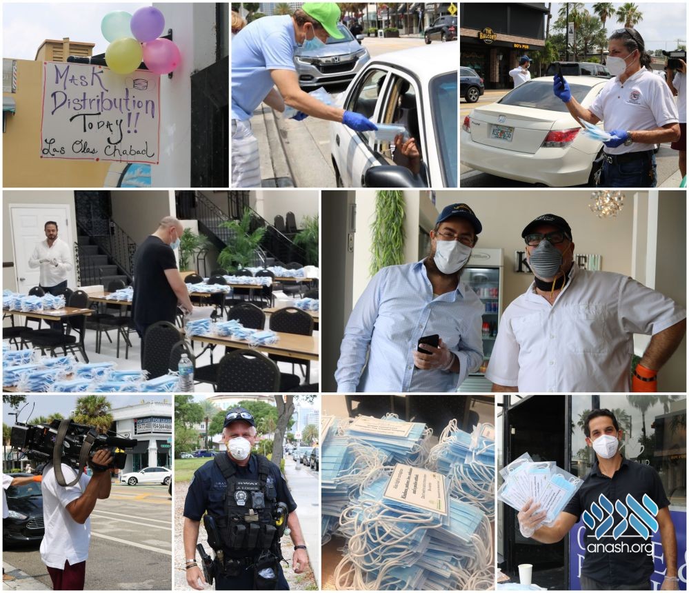 On Friday, April 17, around thirty volunteers stood outside the Chabad Center as 3,000 cars drove by to receive their free masks. They were joined by Fort Lauderdale Mayor Dean Trantalis, who donned a baseball cap featuring the logo of the Las Olas Chabad’s Friendship Cafe and offered masks and words of encouragement to all who passed by.