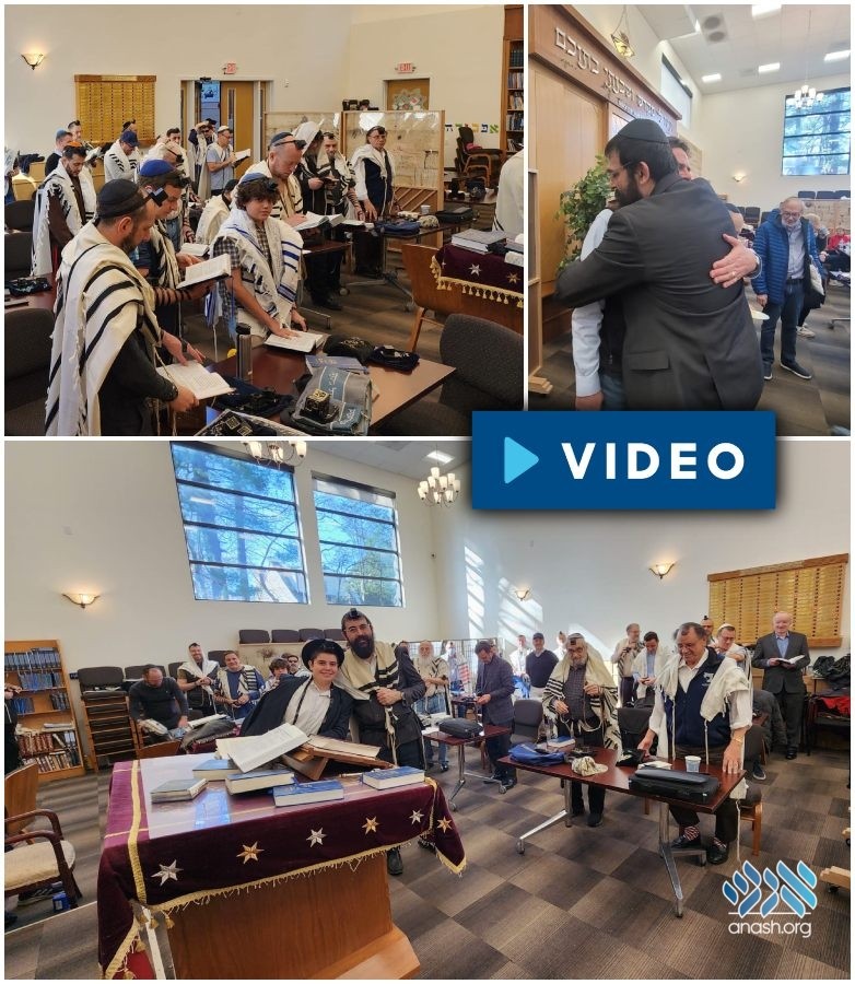 To honor the 40th birthday of shliach Rabbi Sender Geisinsky, 40 men surprised him for shachris at Chabad of Bethesda. But then someone walked in who took him completely by surprise.