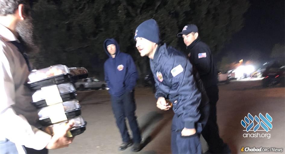 With emergency personnel working overtime to contain California’s wildfires, Rabbi Mendel Wolvovsky brought some relief to weary residents and emergency personnel.
