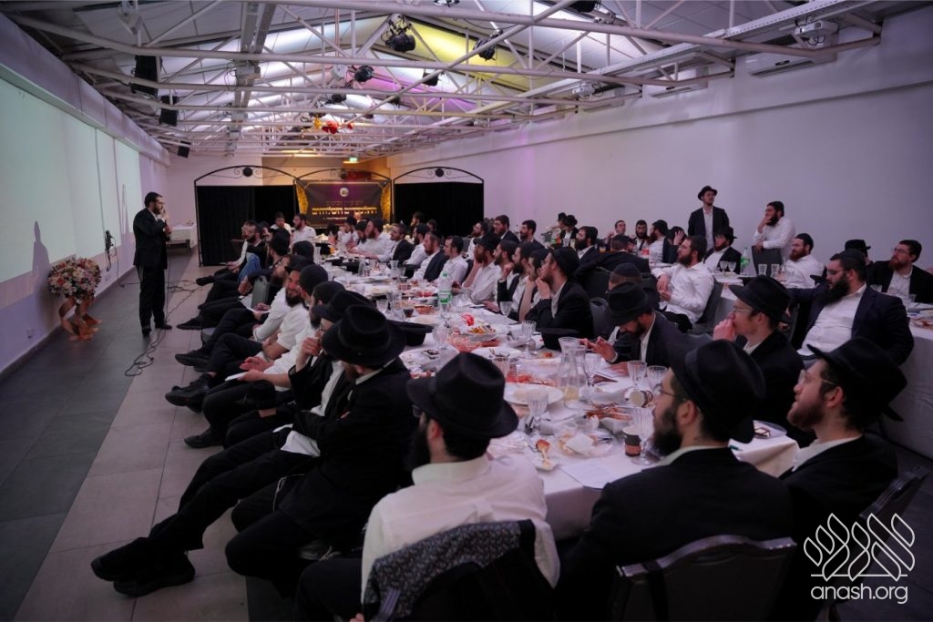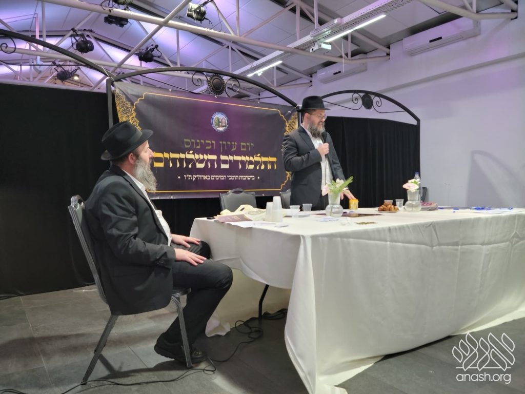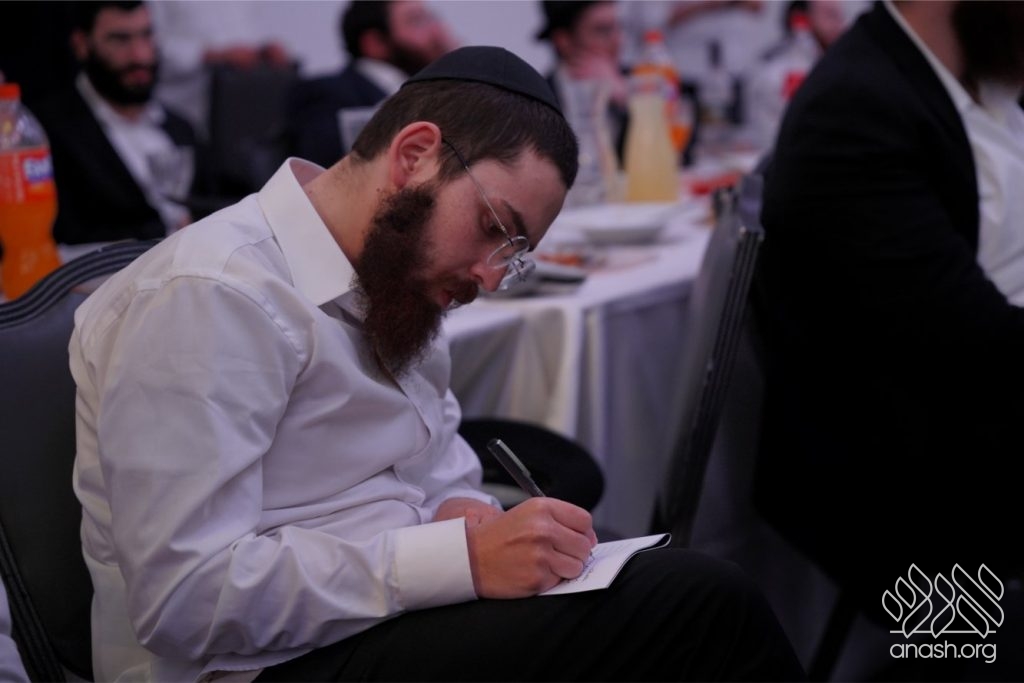 Following Birchas Hamazon led by Shalom Ber Deren of Yeshivas Chazon Eliyahu, the evening session featured a lecture from the renowned speaker Rabbi Shneur Ashkenazi, the Rebbe’s Shliach in Rishon LeTzion. He opened with a personal story from thirty years ago, when he was a bochur in Shiur Beis in the Lod Yeshiva, illustrating the immense power a single sentence can carry — based on a comment his Rosh Mesivta, Rabbi Shneur Zalman Segal, had once told him. Drawing from his experience, he shared practical advice on how to speak so that students will truly listen: start with an engaging opening, develop ideas relevant to the students’ world, and always include a good story.