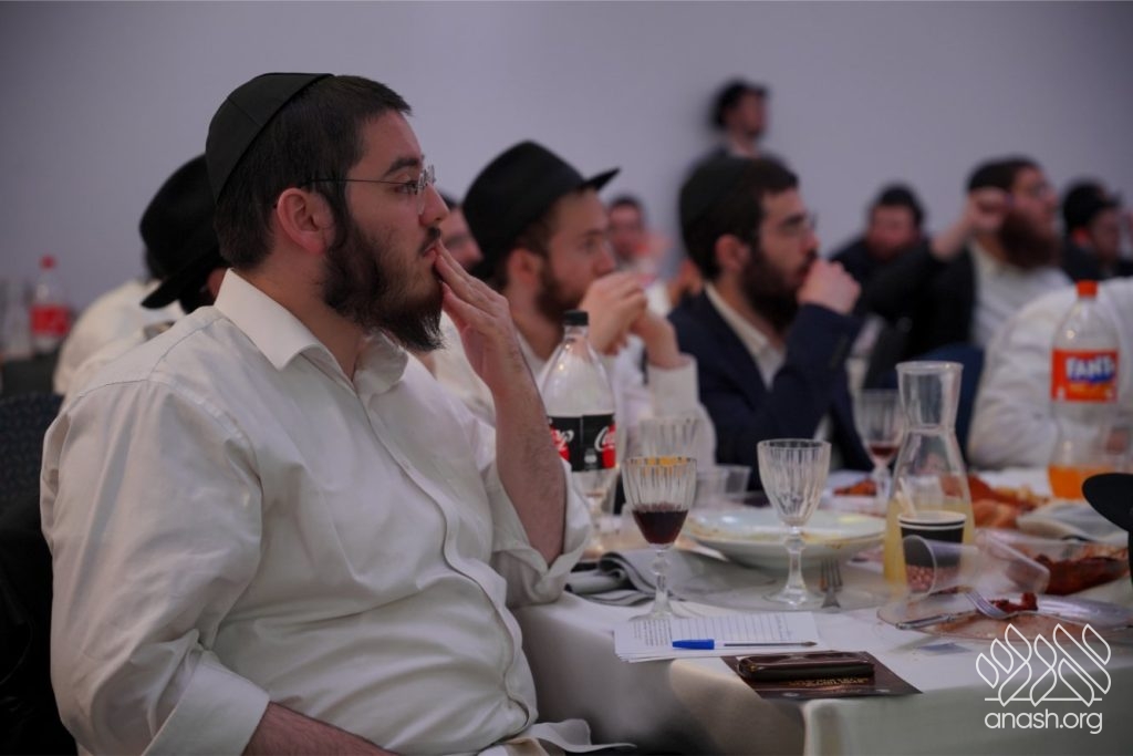 Toward the end of the day, the Talmidim Hashluchim heard a multimedia lecture by Rabbi Shneur Brod of the Rechovos Yeshiva. With exceptional skill, he presented seven practical tips for conducting a successful personal conversation with a student, outlining exactly what to do and what to avoid.