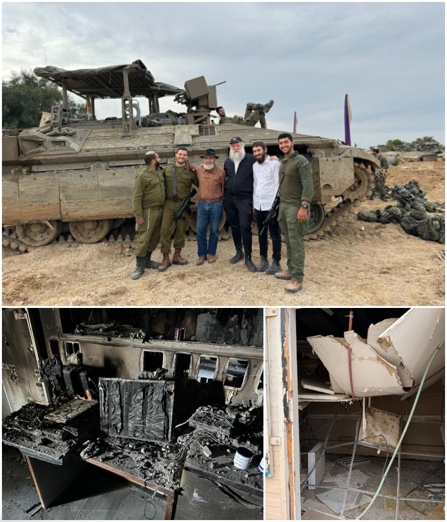 Together they witnessed the horrific site of the intelligence center where many Israeli Soldiers were murdered or taken hostage. They said Tehillim in the shul and lit candles in their memory.