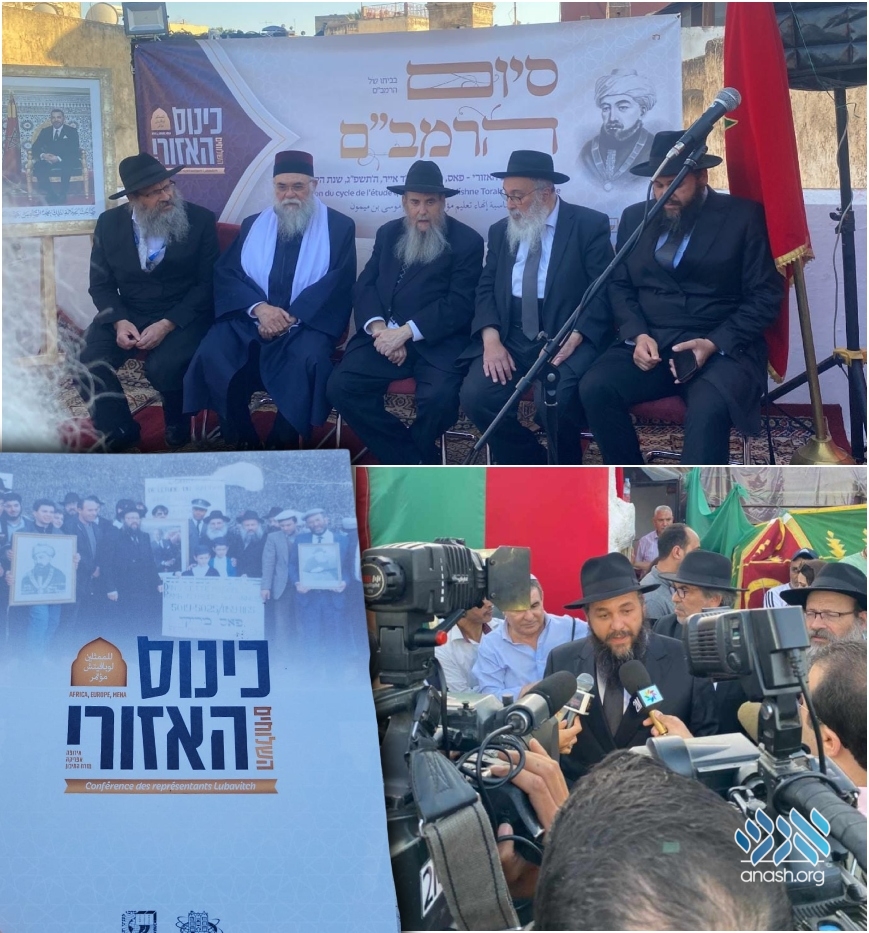 While in Morocco for a regional Kinus Hashluchim, tens of shluchim gathered at the home where the Rambam lived in Fez, Morocco, and held a Siyum Harambam.