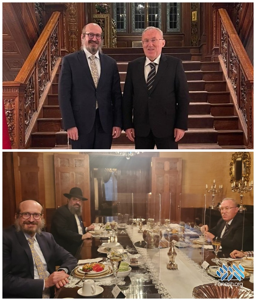 The Turkish ambassador to Washington Mr. Murat Mercan hosted Shliach Rabbi Mendy Chitrik, Chief Rabbi of Turkey and Chairman of the Association of Islamic Rabbis, for a kosher Iftar dinner at the official residence of the Turkish Embassy.