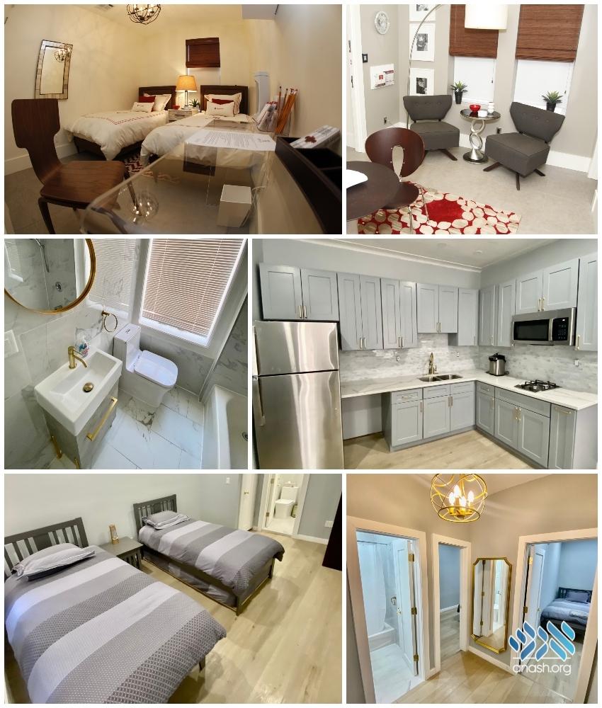 The new option on Empire Blvd hosts three luxury apartments, which can be reserved individually or together for Shluchim bringing a group or large family to visit. Each apartment has its own kitchen and living area. This location can provide sleeping accommodation for up to ten people at a time, and the largest suite can host up to 17 people for meals.