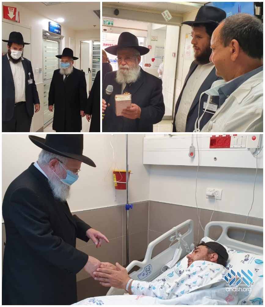 A special and emotional visit took place at the Wolfson Medical Center in Cholon, where a number of the injured from the rockets are hospitalized.