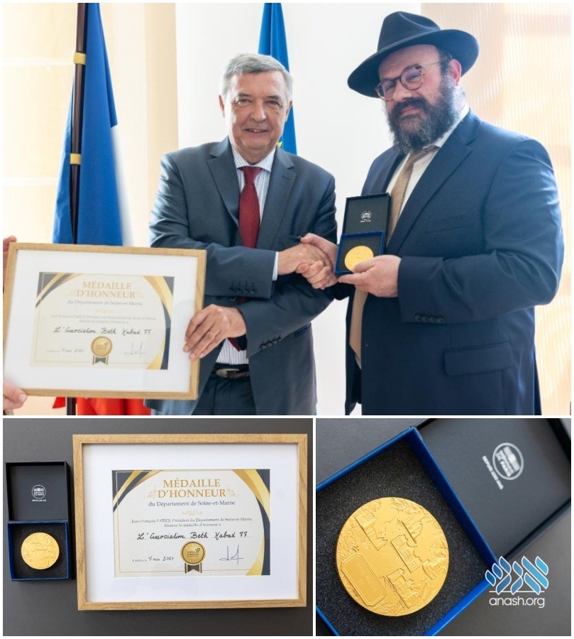 Shluchim Rabbi Yossi and Tzlacha Amar of Seine-et-Marne, France, were awarded the prestigious “Medal of Honor for Labor” awarded to only two organizations per year, making a significant Kiddush Hashem.