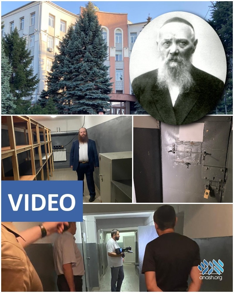 In preparation for the special documentary that will be aired by the global Chof Av farbrengen at chofav.com, a group of shluchim visited the detention cell where Harav Levi Yitzchak Schneerson, father of the Rebbe was led on the night of his arrest, on 18 Nissan 5699, 81 years ago.