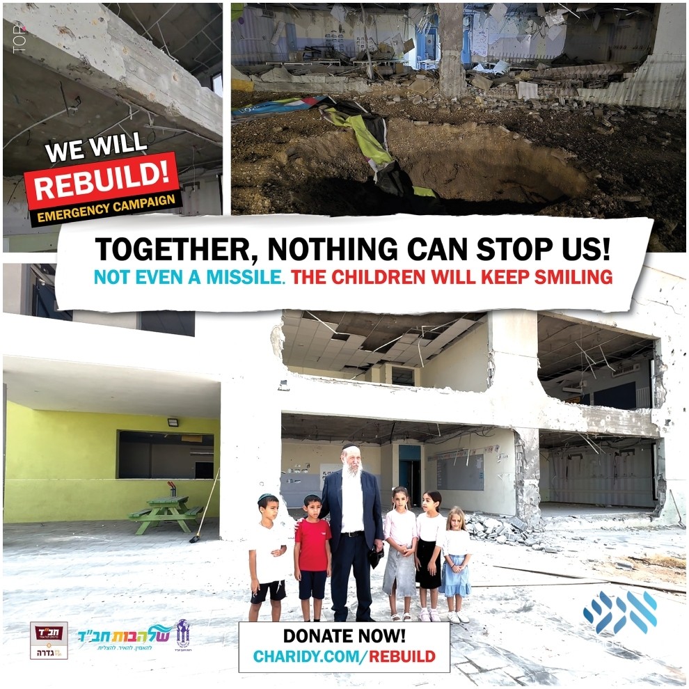 After an Iranian missile destroyed a Chabad school in Gedera and a missile from Gaza damaged the headquarters of the Chabad educational network, the shluchim vow to increase and broaden their activities.