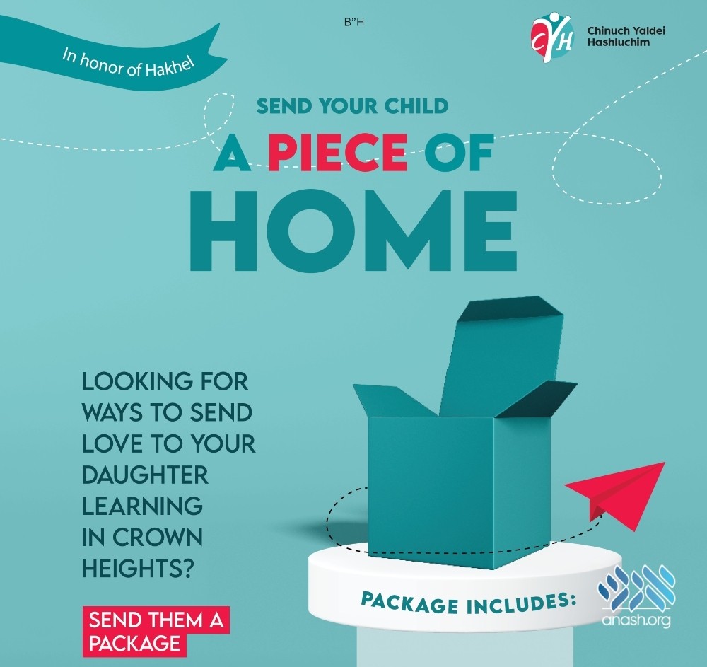 Chinuch Yaldei Hashluchim of the Shluchim Office launches a brand new “A Piece of Home” initiative for parents to send a care package to their daughter in Crown Heights at any time.
