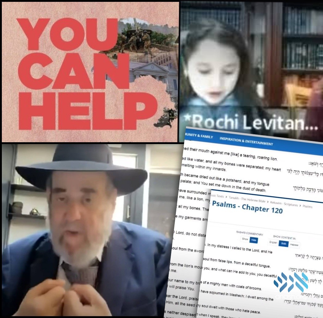 The incredible Emuna displayed by the women was highlighted by the singing and home art and crafts of a young eight-year-old Shlucha, Sterna Sara Levitanksy. She has used the song, about trust in Hashem and never being alone, to comfort herself as she hides in the bunker in her home, loud explosions shaking the house above. The striking image deeply moved the virtual crowd.